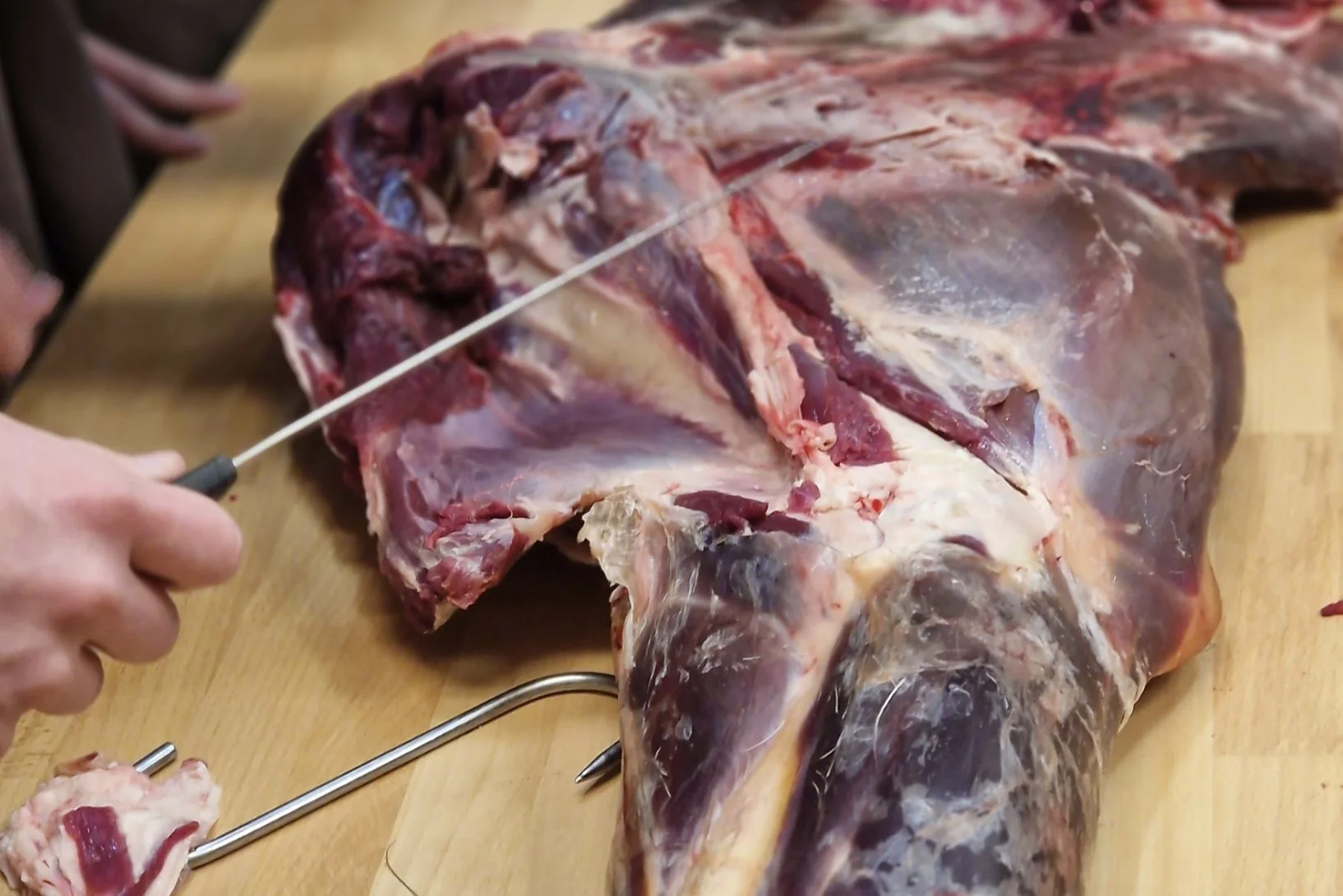 Derfor henger det en slakteskrott på kjølerommet på Geitmyra i Ringsaker nå.