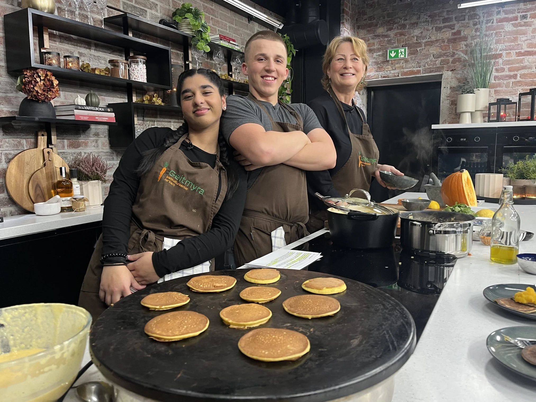 – Dette er the real deal, sa William da han og Hadia skulle ta over kjøkkenet på God morgen, Norge. Wenche var syk, og juniorkokkene fra Geitmyra var klare. På menyen sto det gresskarlapper og -gresskarsuppe. Juniorkokkene jobber mye med ansvarlig forbruk og på TV skulle de unge kokkene vise resten av landet hva de kunne gjøre med alle gresskarene etter Halloween. – Jeg var litt nervøs, men jeg synes det gikk ganske bra!: