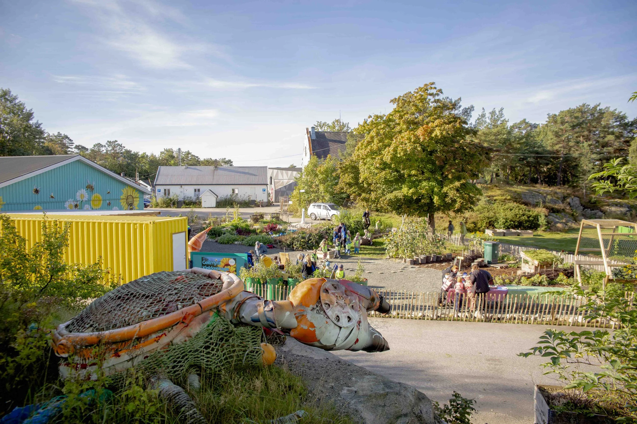 Hvor mange hus har en makrell som står opp gjennom taket? Og søppelskulpturer laget med plast fra havet som hilser deg velkommen? Det er Sedin Zunic som står bak kunstverkene og veggmaleriene på Geitmyra Kristiansand. Og snart blir det enda mer kunst å se på Odderøya, i samarbeid med Knuden og Talent Sør - Visuell kunst skaper vi kunstistalasjoner som skal vekke kreativitetet og nysgjerrigheten til besøkende i hagen vår.