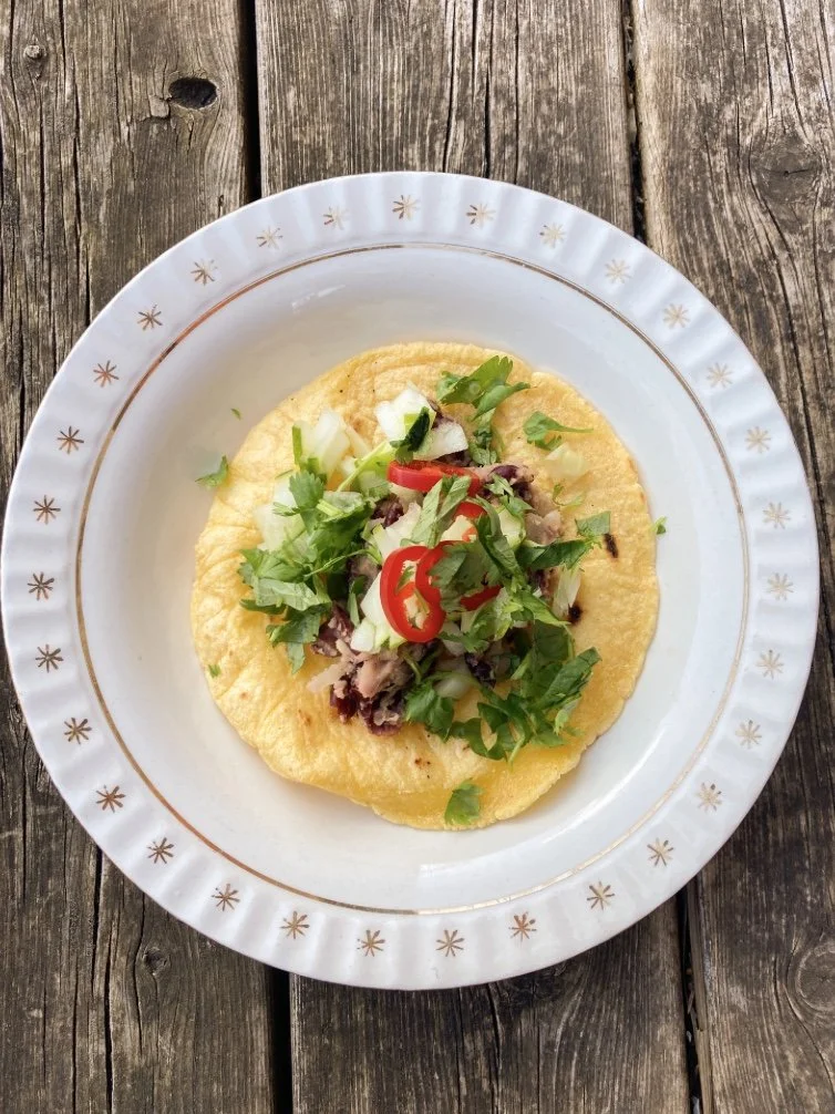 Her er det ikke ferdigkrydder og kjøttdeig – men smakfull bønnemos, salsa som smaker friskt og søtt, og myke maislefser.